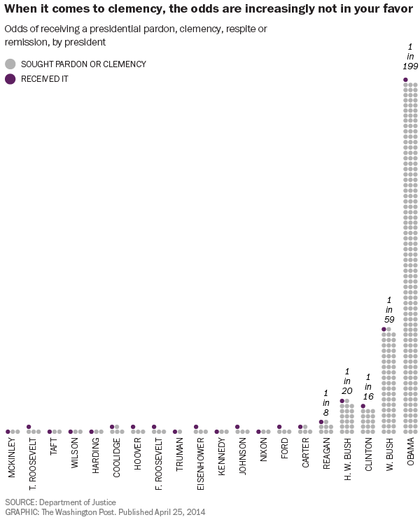 Christopher Ingraham shares a chart on Obama’s clemency record thus far: