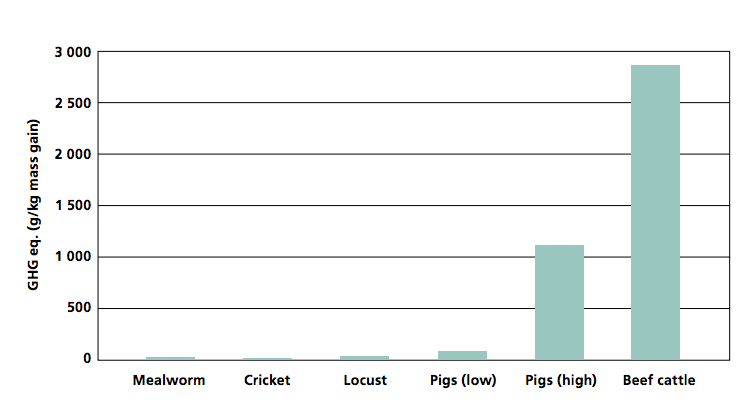 This graph [above], from the UN report, shows the greenhouse gas emissions that result from producing a kilogram of pork and beef, compared to a kilogram of insect meat … Because demand for meat is rising around the world, livestock production is going to become an increasingly big reason why the planet is warming — unless we find an alternative.