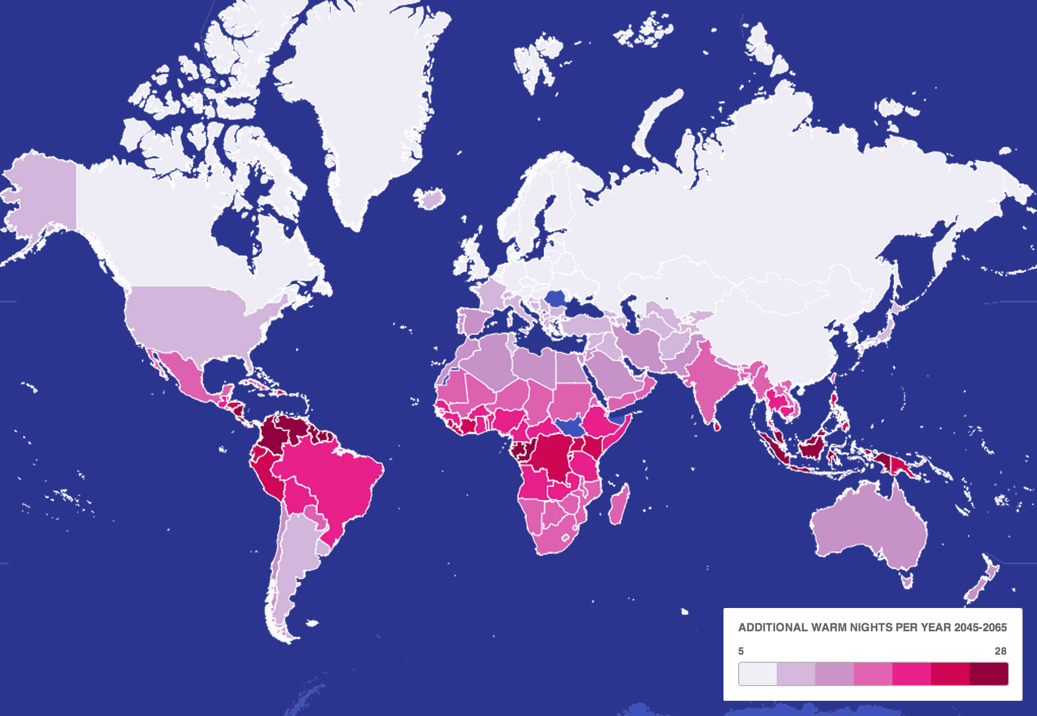 Worldwide, [climate change will lead to] somewhere around two weeks of higher nighttime low temperatures. In some places, winter nights may be unseasonable warm, or in others summer nights could grow more sweltering and sleepless.