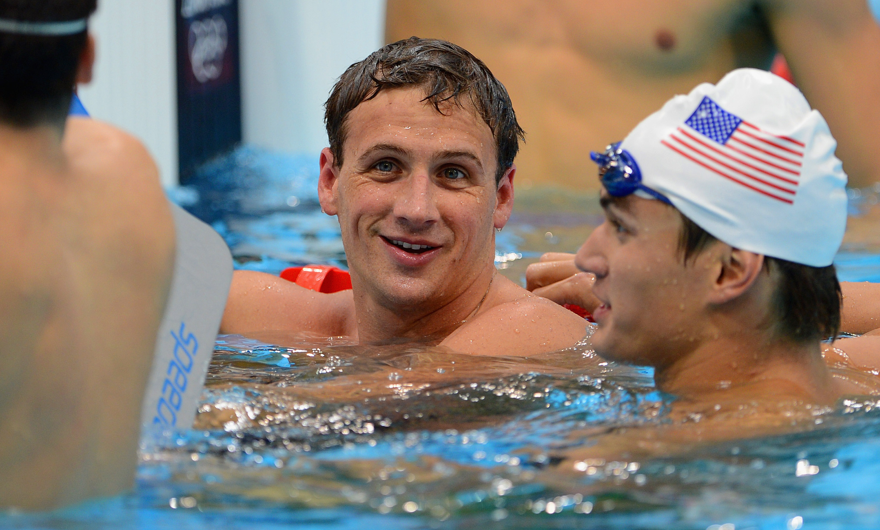 (Photo: Ryan Lochte of the USA looks on during a USA team training session at the Aquatics Centre at Olympic Park on July 23, 2012 in London, England. By Michael Regan/Getty Images.)