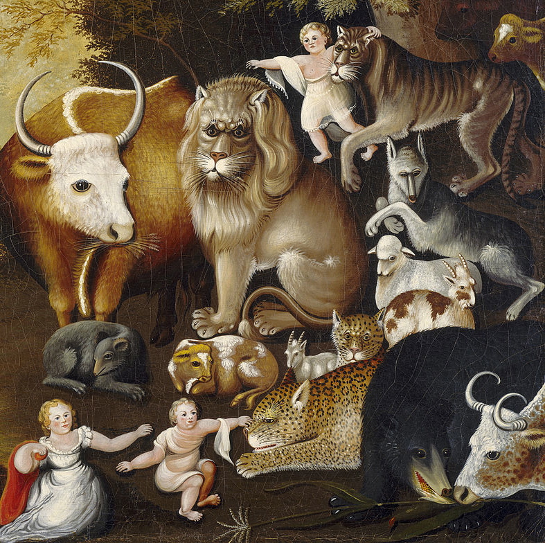 (Detail of Edward Hicks’ Peaceable Kingdom, ca. 1834, via Wikimedia Commons)