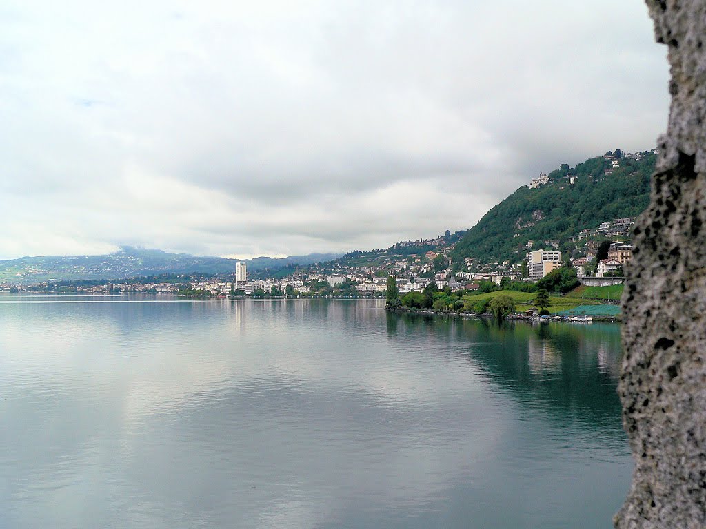 The photo is taken from the Chateau de Chillon in Veytaux Switzerland, looking North along the shore of Lac Leman toward Monteux. I haven’t been there since the early spring of 1983, but I recognized it instantly. I remember heading for Geneva by train from Rome. I was a few months shy of 19. It was a gorgeous day, with a full view of the Alps coming through the Rhone Valley. I happened to be out in the passageway gazing at the Lake and the mountains beyond when we passed the Chateau on the way into Montreux. I grabbed my backpack and hopped off the train there, and walked back to Veytaux, where the castle is located. I was very into castles in those days, but had never heard of Chillon. So I just happened upon one of the most beautiful in the world, and on a day that did it full justice. What a great day.