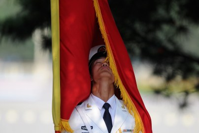 A Chinese honour guard prepares for the arrival of Bangladesh Prime Minister Sheikh Hasina and Chinese Premier Li Keqiang during a welcome ceremony outside the Great Hall of the People in Beijing on June 9,2014. Sheikh Hasina is on a visit to China from June 6 to 11. AFP PHOTO / WANG ZHAO (Photo credit should read WANG ZHAO/AFP/Getty Images)
