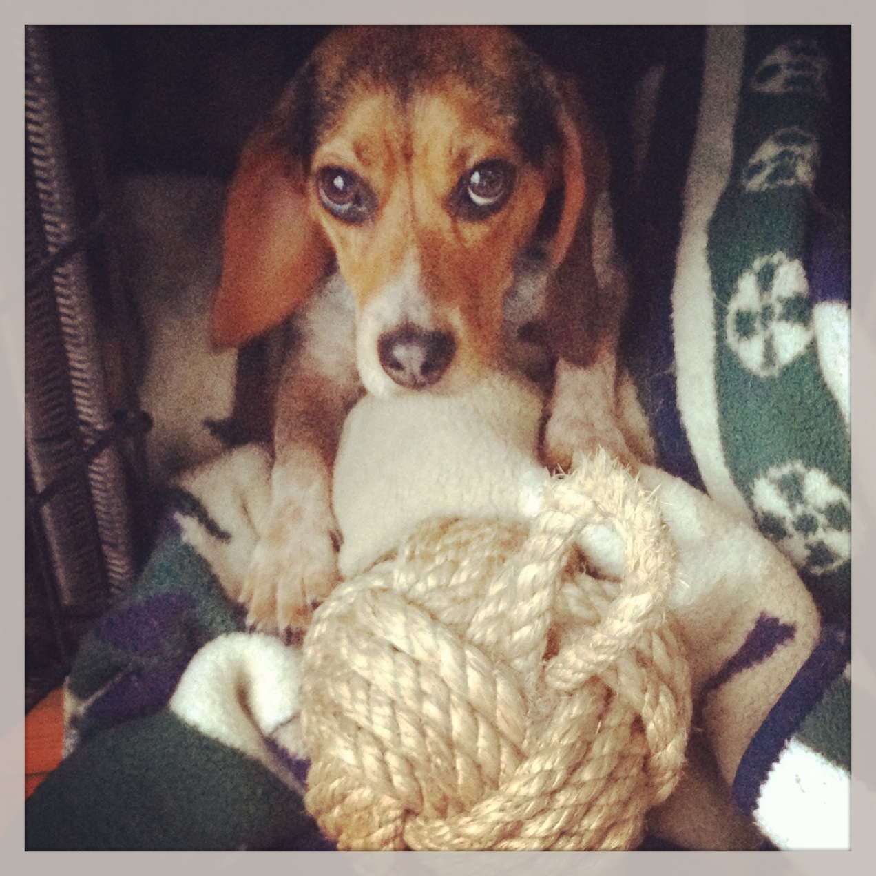 Face Of The Day That’s a big nautical knot door-stopper that Bowie gamely tried to take into her crate and chew on yesterday. Guilty never looked so adorable. Tweet Click to email a link to a friend (Opens in new window) Email Like Loading...