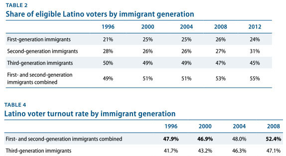 A new report from the Center for American Progress suggests they’re pretty justified in being scared. Immigration reform is an especially salient voting topic for first- and second-generation immigrants, and that group has two important characteristics: (a) it’s growing as a share of the Latino population, and (b) it’s turning out to vote in ever higher numbers … Republicans may be able to hold onto Congress for a while longer in the face of numbers like these, but winning the presidency is going to get harder and harder. Not impossible. But that’s a mighty big headwind, and it’s getting stronger every year.