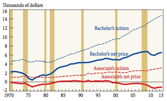 At the same time, Derek Thompson makes the case that college isn’t actually getting that much more expensive: