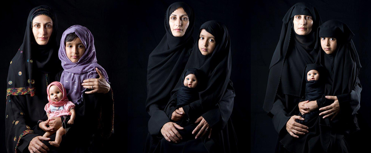 [I]n her “Mother, Daughter, Doll” series, taken from a new exhibit at the Howard Greenberg Gallery, The Middle East Revealed: A Female Perspective, Almutawakel portrays a simple progression—from Western clothing to full hijab—that has far-reaching implications for how we read and register the human form.