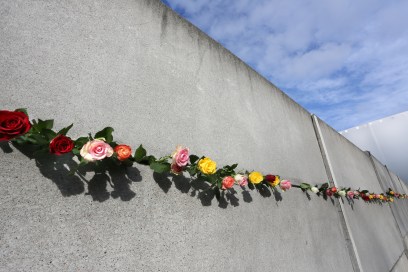 Roses stuck in a gap of the memorial of the Berlin Wall on November 9, 2013 on occasion of the 24th anniversary of the fall of the Wall. AFP PHOTO / DPA / STEPHANIE PILICK +++ GERMANY OUT (Photo credit should read STEPHANIE PILICK/AFP/Getty Images)