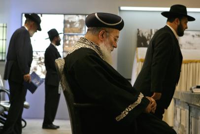 Shanghai, CHINA: The Sephardi Chief Rabbi of Israel, Rabbi Shlomo Amar (C) prays with a group of Orthodox Jews during a tour of the historic Ohel Rachel synagogue which was built in 1920 during the period of the first wave of Jewish migration to Shanghai, 12 June 2006. The Chief Rabbi is in China to meet government leaders in Shanghai and Beijing and toured the synagogue which is only open to the Jewish community during special religious occassions and used to house up to 700 devotee’s in the period 1920 – 1949 when many Jews sought refuge in Shanghai. AFP PHOTO/Mark RALSTON (Photo credit should read MARK RALSTON/AFP/Getty Images)