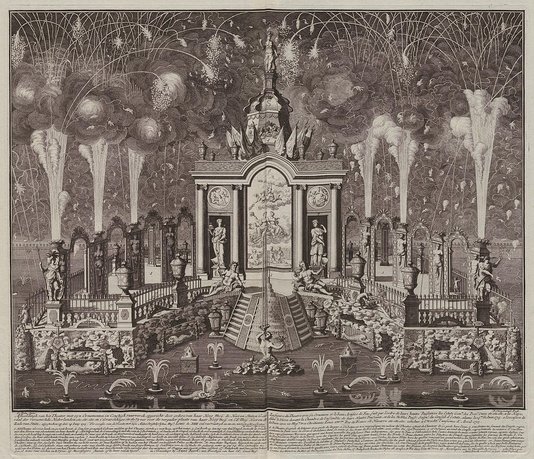 (Image: fireworks at The Hague, June 14, 1713 on the occasion of the “Peace of Utrecht,” via Wikimedia Commons)