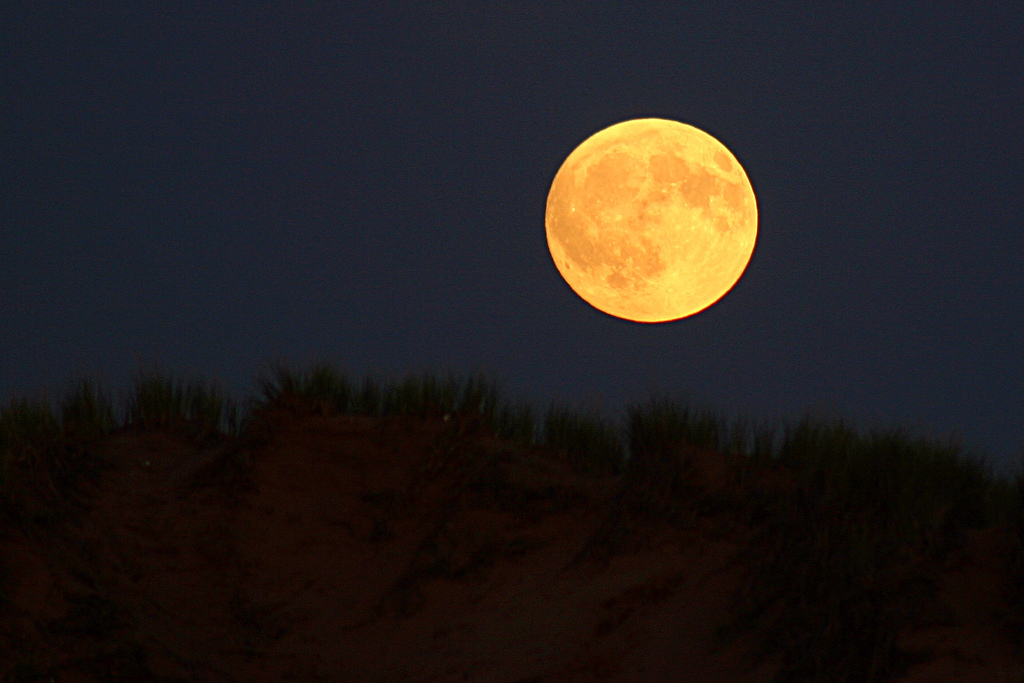 And the yellow half-moon large and low;
