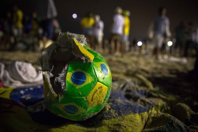 RIO DE JANEIRO, BRAZIL – JULY 8: Brazilian soccer fans at copacabana beach watching their team against Germany with concern within the FIFA World Cup 2014, July 8, 2014, Rio de Janeiro, Brazil. (Photo by Steffen Stubager/Anadolu Agency/Getty Images)