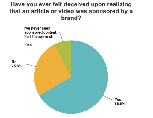 Two-thirds of readers have felt deceived upon realizing that an article or video was sponsored by a brand.