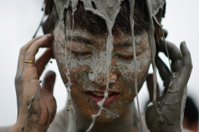 A festival-goer is covered in mud during the 17th Boryeong mud festival at Daecheon beach in Boryeong, 150 kilometers southwest of Seoul, on July 18, 2014. The annual festival aims to promote the use of the mineral-rich mud for cosmetic skin-care and to promote tourism in the region. AFP PHOTO / Ed Jones (Photo credit should read ED JONES/AFP/Getty Images)