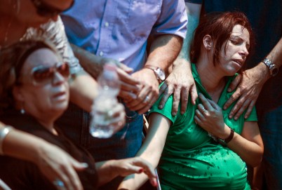 HOLON, ISRAEL – JULY 21: Family members ofÊMajor Tsafrir Bar-Or mourn and cry during his funeral on July 21, 2014 in Holon, Israel. Major Tsafrir was killed Êduring the operation ‘Protective Edge,ÊraisingÊthe number of dead on ÊIsraeli side since theÊbeginningÊof the groundÊenvision to 18.ÊaccordingÊto PalestinianÊsourcesÊÊmore then 400 killed in Gaza since theÊbeggingÊof the operation (Photo by Ilia Yefimovich/Getty Images)