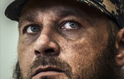 A security serviceman wearing military fatigues stand during a press conference held by self-proclaimed Prime Minister of the pro-Russian separatist “Donetsk People’s Republic” in the eastern Ukrainian city of Donetsk, on July 19, 2014. Alexander Borodai ruled out on July 18, 2014 a temporary truce with government forces but pledged to allow investigators to access the site of downed Malaysia Airlines jet MH17. Concerns are mounting over the integrity of the crash zone in rebel-held eastern Ukraine, with the government in Kiev on Saturday accusing Moscow of helping pro-Russian separatist insurgents destroy evidence. AFP PHOTO/ BULENT KILIC (Photo credit should read BULENT KILIC/AFP/Getty Images)
