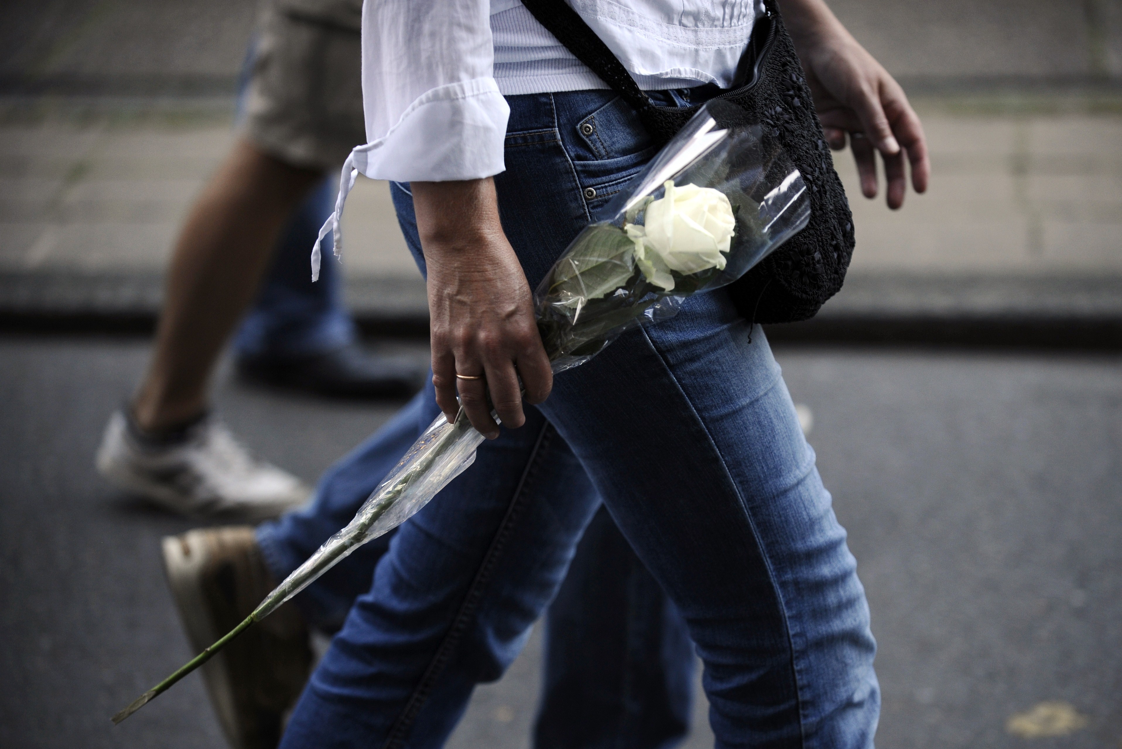 (Photo: A person holds a white rose during a silent march in memory of the victims of the downed Malaysia Airlines flight MH17, on July 23, 2014 in Amsterdam. By John Thys/AFP/Getty Images)