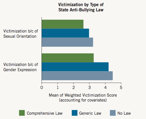 But Eliza Byard, executive director of GLSEN, says her organization’s research controls for those factors. She points out that her group found better reports from LGBT students in Arkansas and North Carolina, two states that aren’t traditionally associated with LGBT-friendly environments, after they passed comprehensive laws protecting LGBT students.