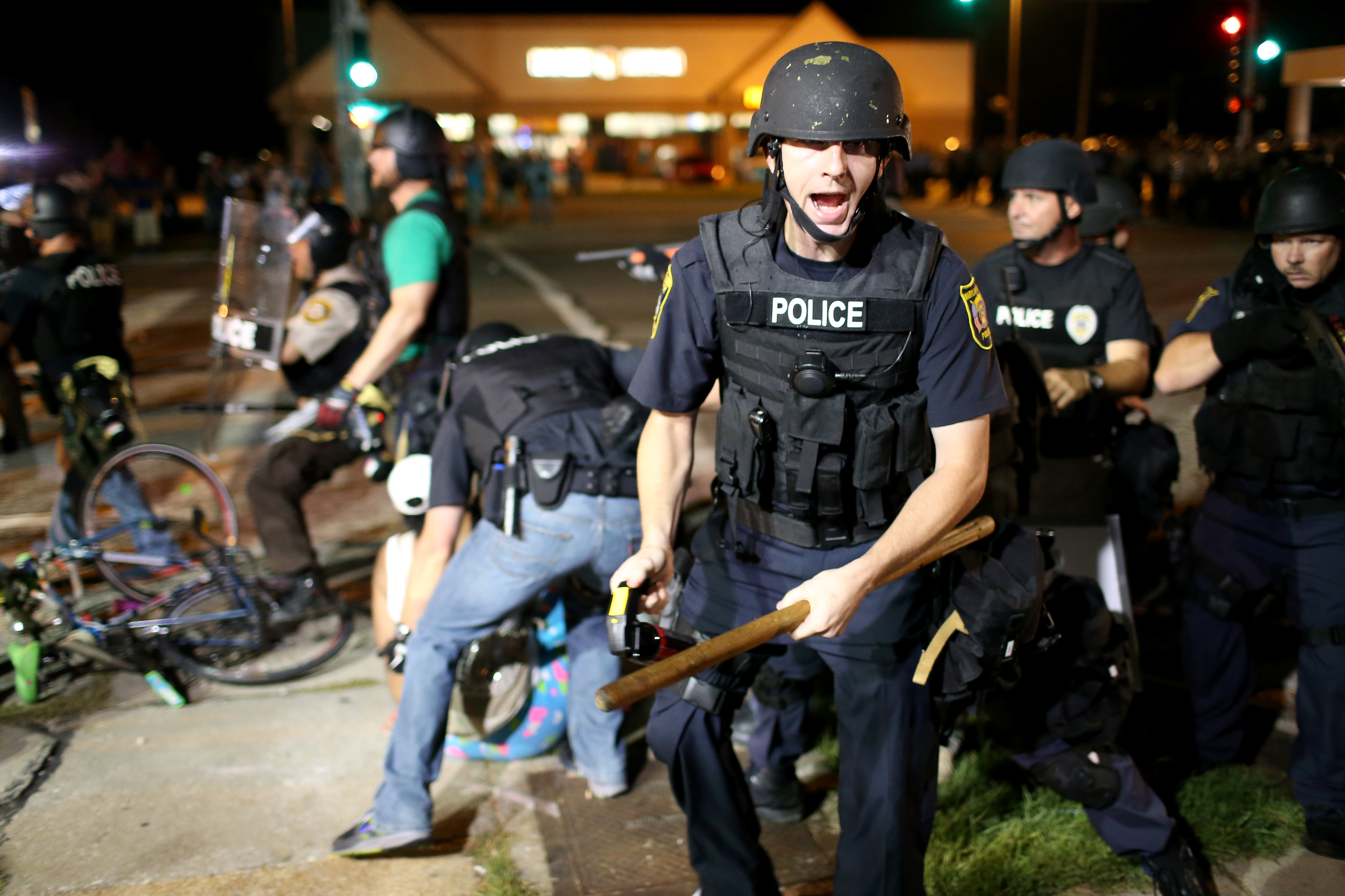 FERGUSON, MO – AUGUST 18: Police officers arrest a demonstrator on August 18, 2014 in Ferguson, Missouri. Violent outbreaks have taken place in Ferguson since the shooting death of unarmed teenager Michael Brown by a Ferguson police officer on August 9th. (Photo by Joe Raedle/Getty Images)