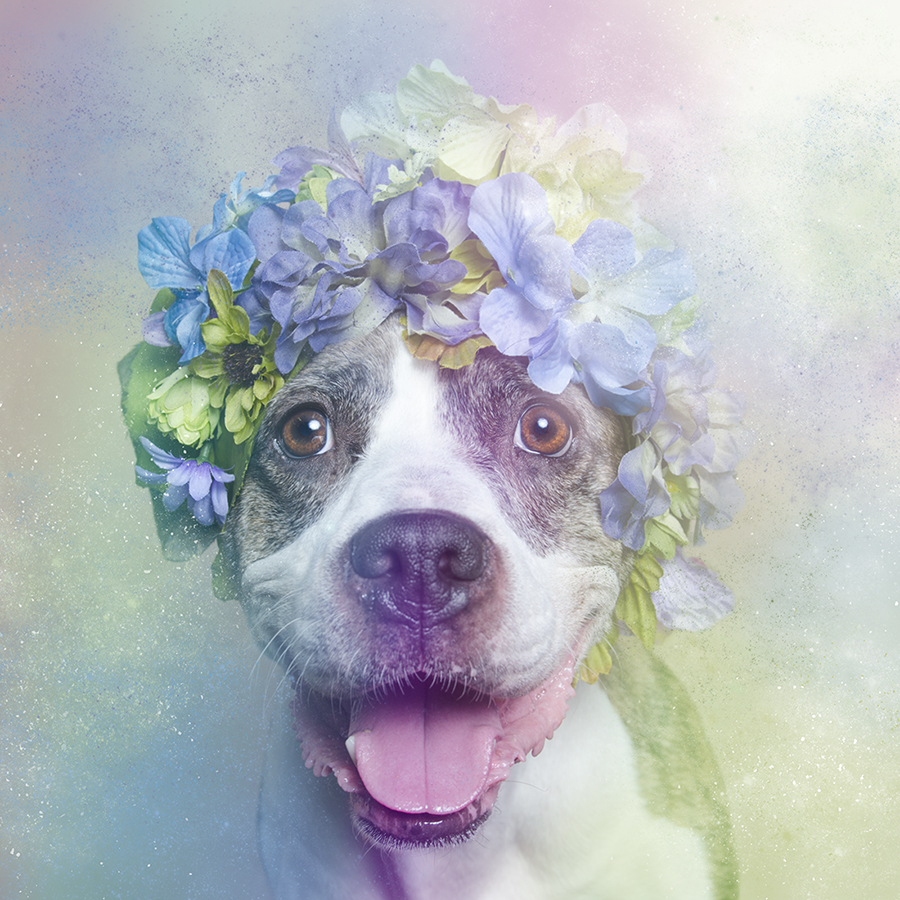 I made flower headpieces and approached three rescue groups in New York City: Sean Casey Animal Rescue, Second Chance Rescue and Animal Haven. All three welcomed my project with enthusiasm. I set up a studio in both boarding facilities and photographed some of the pit bulls who were up for adoption (July and August 2014).