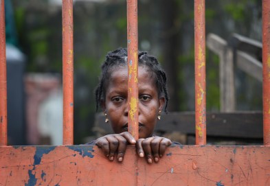 MONROVIA, LIBERIA – AUGUST 21: A West Point slum resident looks from behind closed gates on the second day of the government’s Ebola quarantine on their neighborhood on August 21, 2014 in Monrovia, Liberia. The government delivered bags of rice, beans and cooking oil to residents, who are forbidden from leaving the seaside slum, due to the Ebola outbreak in their community. More than 1,200 people have died due to the Ebola epidemic in West Africa. (Photo by John Moore/Getty Images)