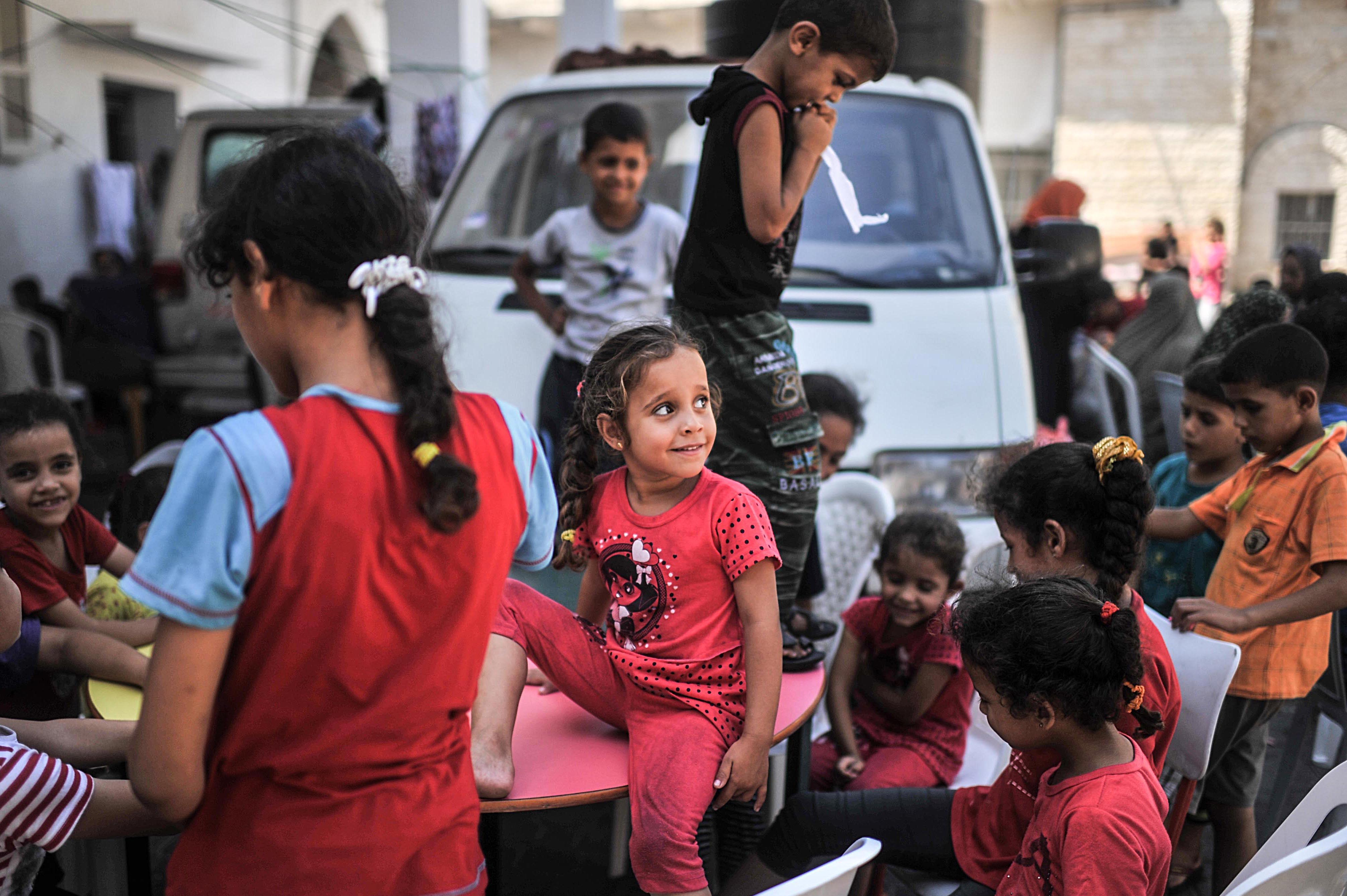 (Photo: Palestinian children taking shelter in Salahaddin school in Gaza City are seen on July 31, 2014. Nearly 1900 Palestinians, who escaped from cities of Shujaya and Beit Hanoun under heavy Israeli shelling, live in Salahaddin school. By Onur Coban/Anadolu Agency/Getty Images)