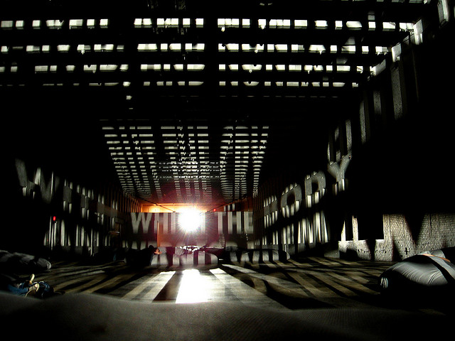 Today I was researching poetry which Jenny Holzer has used in her phenomenally moving installations over the years, and I came upon this video of her PROJECTIONS with poems by Wislawa Szymborska for MASS MoCA in North Adams, Massachusetts, which I found excruciatingly powerful to view on this day. Holzer features “Tortures” and “The Joy of Writing,” poems which can be found in View with a Grain of Sand: Selected Poems of Wislawa Szymborska, translated from the Polish by Stanislaw Baranczak and Clare Cavanagh (Harcourt Brace & Co.). The video can be viewed here.