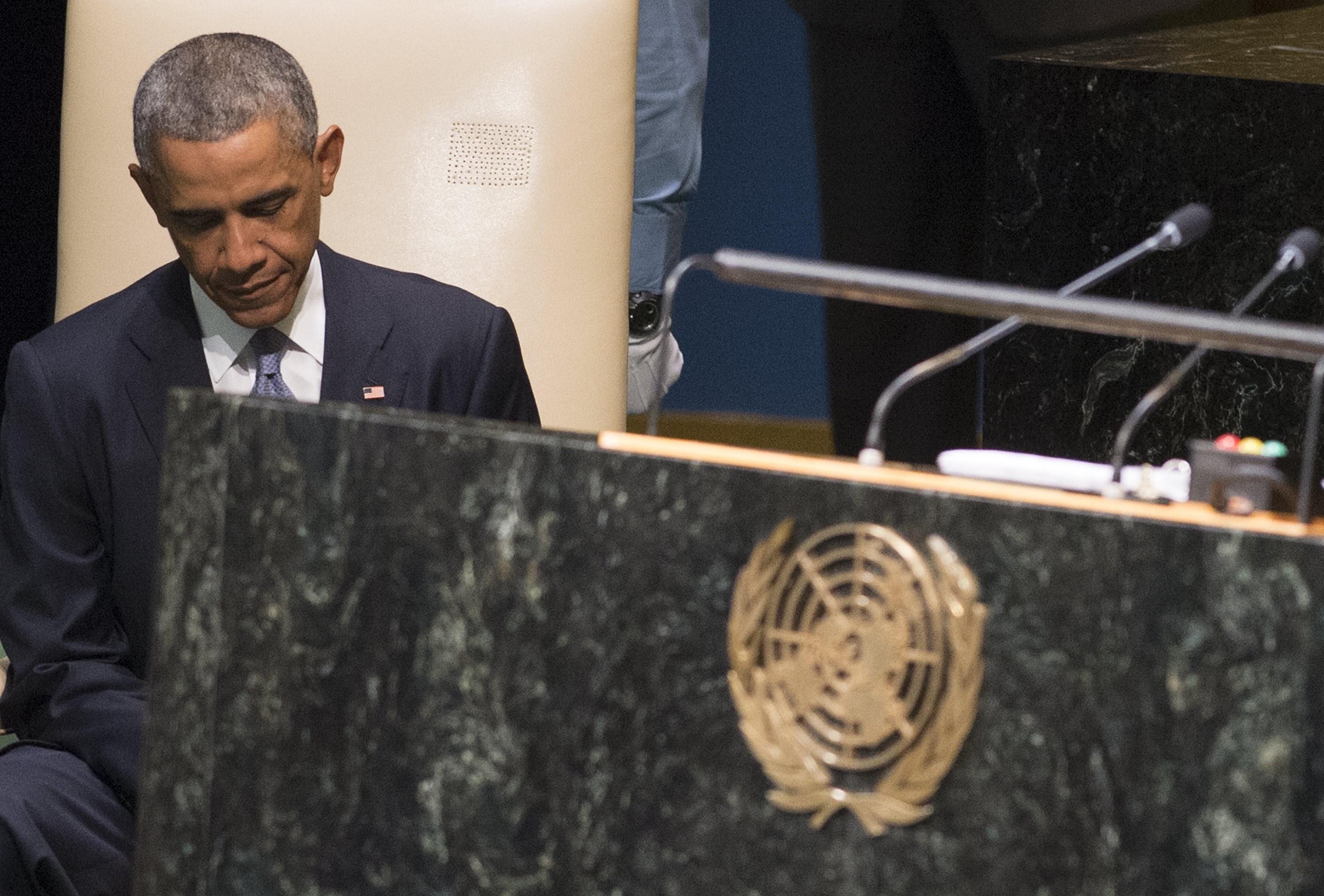 (Photo: US President Barack Obama sits after speaking during the 69th Session of the UN General Assembly at the United Nations in New York, September 24, 2014. By Saul Loeb/Getty Images)