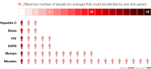 That chart giving R0 values for various pathogens is kind of misleading, since it leaves off an important virus that most people are familiar with: influenza. R0 for influenza varies from around 1.0 to 2.4, i.e. right around the value for this Ebola outbreak. That doesn’t stop influenza from spreading everywhere pretty much every year and causing pandemics when novel strains appear. Ebola outbreaks can be brought under control because its transmission can be interrupted easily, not because its R0 is low.