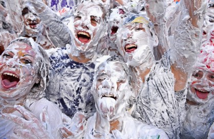 Students Celebrate Raisin Monday At St Andrew’s University <> at University of St Andrews on October 20, 2014 in Glenrothes, Scotland.