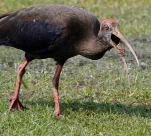 NEW DELHI, INDIA – OCTOBER 21: Indian Black Ibis feeds on earthworm, near Raisina hill on October 21, 2014 in New Delhi, India. (Photo by Virendra Singh Gosain/Hindustan Times via Getty Images)