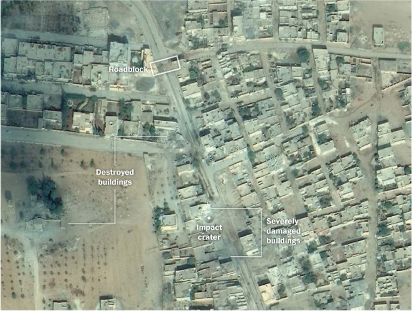 (Image: a UN satellite photo shows details of the street fights between Islamic State militants and Kurdish fighters in Kobani. Via Rick Noack.)