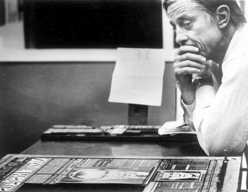 WASHINGTON, DC – AUGUST 8: The Wshington Post’s Ben Bradlee in the composing room looking at A1 of the first edition, headlined “Nixon Resigns.” (Photo by David R. Legge/The Washington Post)