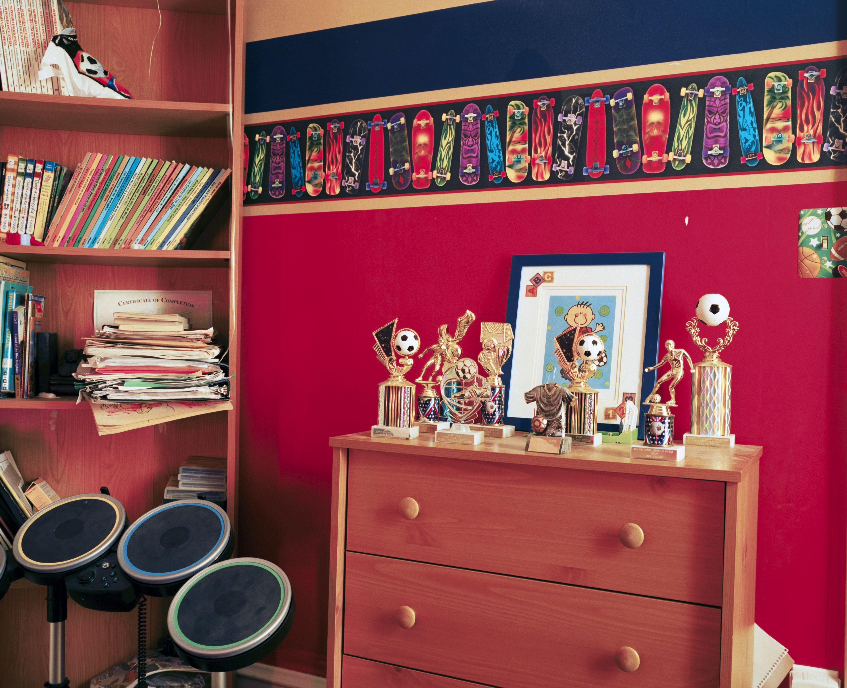 Contrary to political rhetoric on the subject, Meehan photographs a group of people deeply embedded in their local communities; attending school, church, working, volunteering and paying taxes like every other citizen. The series captures a domestic landscape slightly askew, requiring the viewer to pick out the tell-tale clues of who these people are and the lives they are trying to build. While the soccer trophies, lazy boy sofas and Toy Story kids table feel decidedly American, there are hints of an immigrant household as well, blended together in a familial harmony evocative of our country’s self-proclaimed “melting pot” vision.