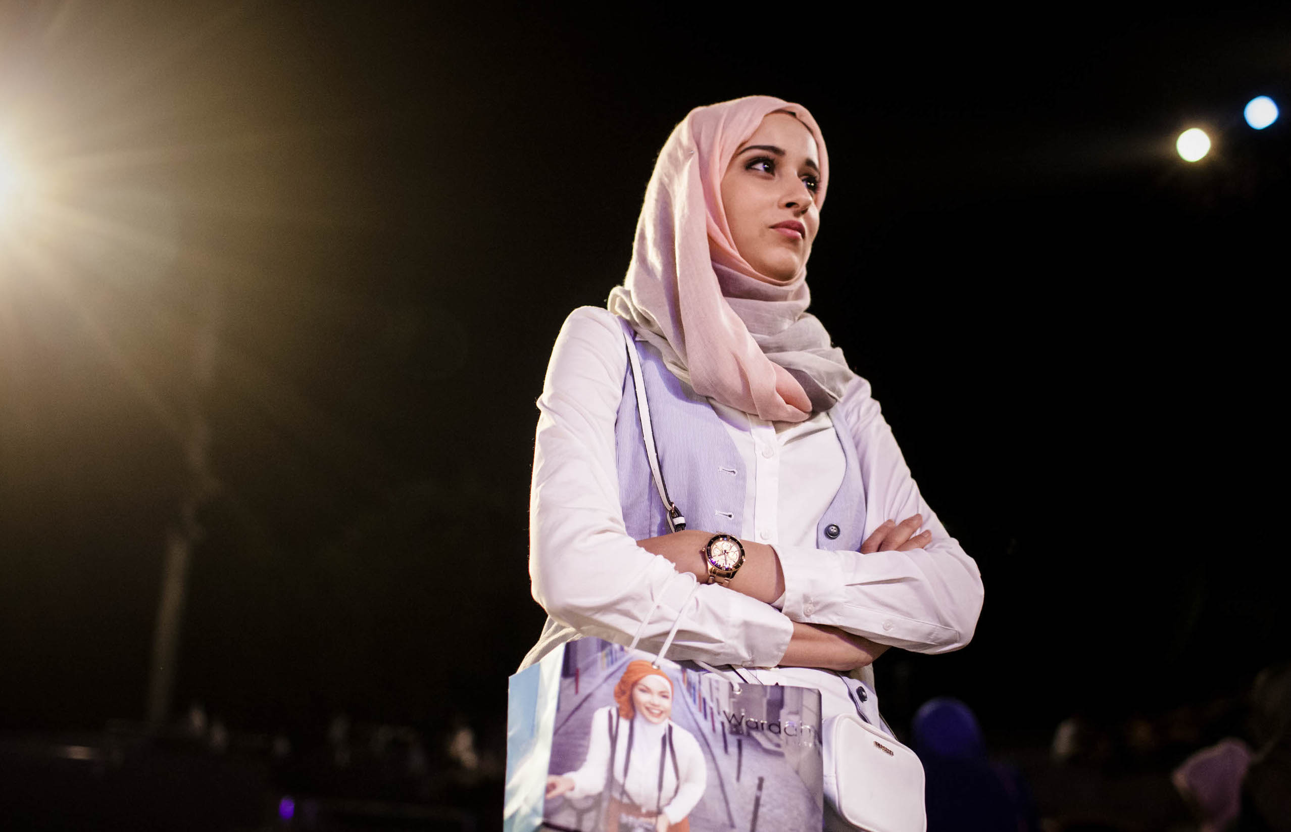 Ben Guefrache Fatma of Tunisia, a contestant of the Miss World Muslimah 2014, during a practice session before the final round at Prambanan temple in Yogyakarta, Indonesia on November 20, 2014. Around 25 finalists take a part in the 4th Muslim World contest. By Ulet Ifansasti/Getty Images.