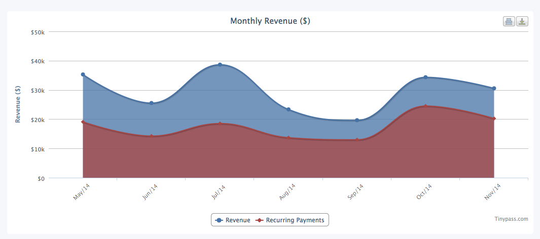 So we’re up a bit year-on-year. The comparison, as of yesterday, is $814k for the first eleven months of 2013, versus $934k for the first eleven months of 2014, a 15 percent year-on-year increase. Traffic is also relatively steady: at 714,000 unique readers this month, for 5.2 million pageviews, about average for the last six months, but lower than when we had just initiated the pay-meter.