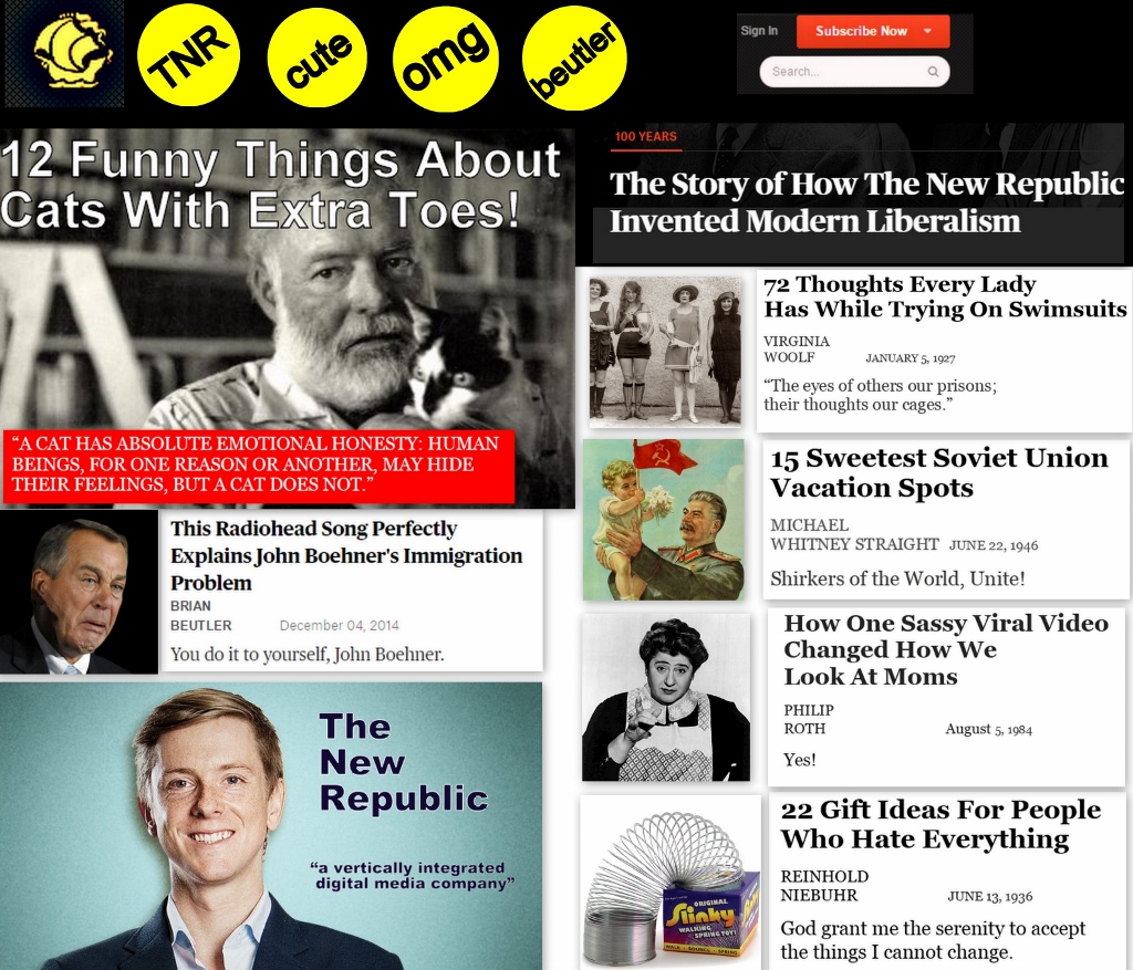Somebody said yesterday that TNR doesn’t need a better business model, it needs a better owner. Yes, exactly. I don’t know how many rich people are willing to subsidize a money-losing journalistic operation out of principle and for the common good, but we sure need to find them.