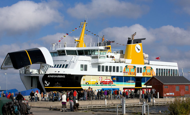 My first inclination was the British Isles, so I spent a while searching Google images of ferry lines around England and Ireland but none of the ships seemed to have the right yellow paint job. “Yellow ferry” wasn’t that helpful really; it turned up page after page of Corsican ferries. I then moved through the Netherlands before eventually hitting Denmark, and lo and behold, the Ærøskøbing ferry: