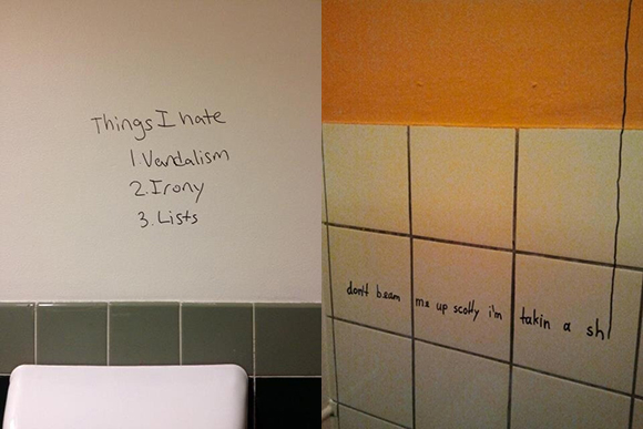 A few photos from that tumblr are above. A dozen more readers submit their own examples of latrinalia: