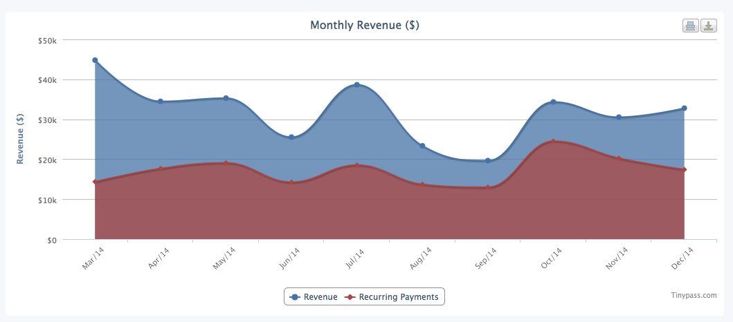 The red is from last year’s subscribers and the blue from new ones this year. Our total gross revenue from subs in 2014 came to $967K. In 2013, it was $851K. That’s a 14 percent increase, year on year. It wasn’t our only source of income, because we also got some Amazon affiliate money and some merchandise profits – about $51K total. So that bit of revenue added to our subs makes the Dish a million dollar company in 2014. Traffic also came in at over a million unique visitors in December and 5.8 million pageviews.