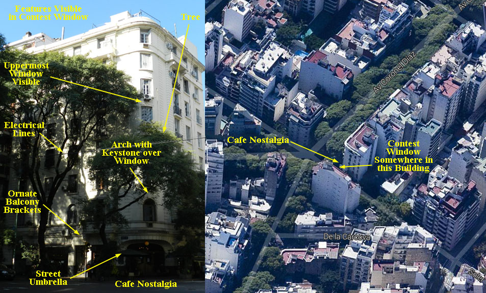 If I were motivated to find the exact window, I’d just take that map and – noting that the bus is turning right – find all the right turns on the route and zoom in on them. But I’m not, because thinking of Buenos Aires reminds me of my favorite author, the master Jorge Luis Borges (who was born there), and I find a parallel between the VFYW contest and his tale of the Zahir: that thing that possesses the power to induce an overwhelming obsession in those who see it, slowly consuming them until they lose all sense of reality, until finally “(they) will have to be fed and dressed, (they) will not know whether it is morning or night, (they) will not know who (they were).”