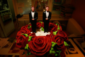 WEST HOLLYWOOD, CA – JUNE 10: Same-sex wedding cake topper figurines are seen at Cake and Art June 10, 2008 in West Hollywood, California. Business is increasing sharply for local wedding services in the days leading up to the start of legal marriages for gay and lesbian couples on June 17. Same-sex weddings could grow the California wedding industry by $684 million and, over the next three years, add $64 million to the state’s budget, a study by the Williams Institute at UCLA’s law school reports. The California Supreme Court refused to stay its decision legalizing same-sex marriage despite calls by conservative and religious opponents for the court to stop same-sex couples from marrying before an initiative to amend the state constitution to ban gay marriage goes to ballot in November. (Photo by David McNew/Getty Images)