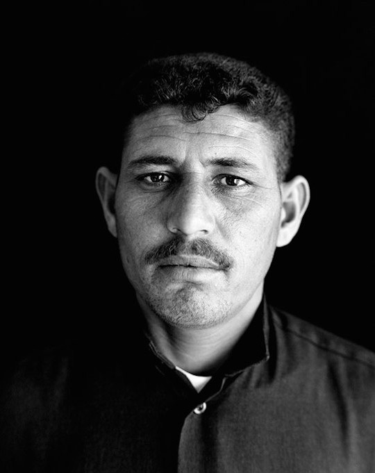 There were close to forty former detainees who did not want their pictures taken, for those who agreed, Barttlet took the portrait in daylight on high quality film, with a deep black background and warm hued lights; an intentional difference from the small digital camera–which intensified the acidic yellows and electric greens of Abu Grahib– used to capture images detainees in crouching, cuffed, and hooded. “I wanted to put these people back in front of the camera and use photography as a humanizing force,” Bartlett says. …