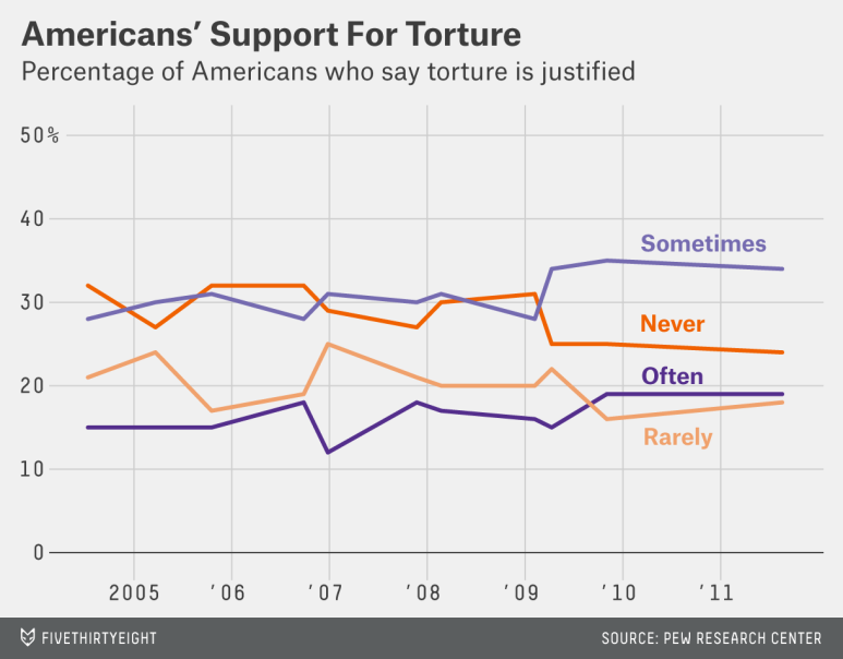 3,000 Americans died on 9/11 because of what these guys did, and I have no sympathy for them. I don’t know the specific details … I haven’t read the report … I keep coming back to the basic, fundamental proposition: how nice do you want to be to the murderers of 3000 Americans?