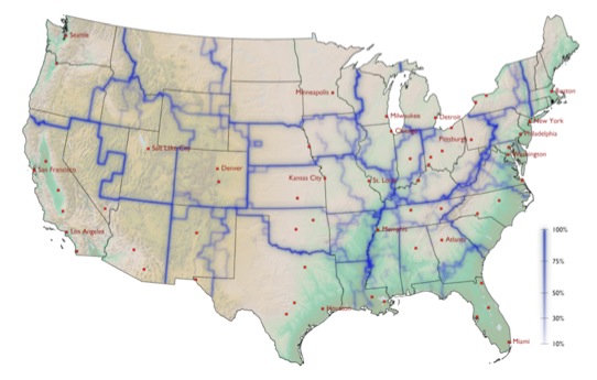 I’d like to point out that the “effective communities” that Mr. Brockmann references in his map may not be as organic as he implies. The boundaries roughly correspond to the districts serviced by the Federal Reserve Banks, which exchange old bills collected by banks for new bills.