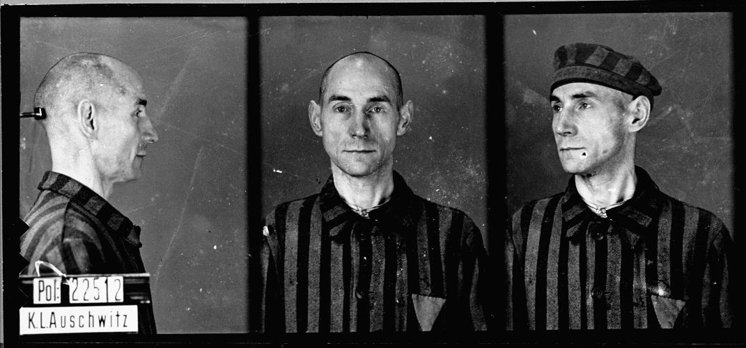 (Photo: Mug shot of homosexual Auschwitz prisoner August Pfeiffer, servant, born Aug. 8, 1895, in Weferlingen. He arrived to Auschwitz Nov. 1, 1941, and died there Dec. 28, 1941. From the State Museum of Auschwitz, Oswiecim, Poland)