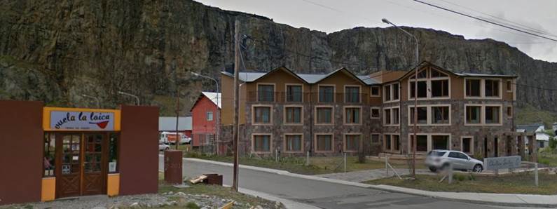 So the picture was taken from the Chalten Suites Hotel, street address San Martín 27. Google street view shows it under construction: