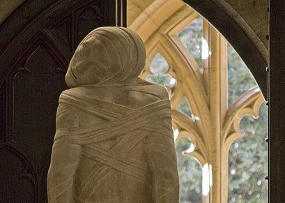 Photos: the road to Emmaus by Caravaggio; the Epstein statue of Lazarus in New College, Oxford; my own personal Jesus; and a cross at Hatches Harbor at the end of Cape Cod.)