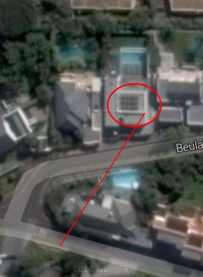Then I found the solar panels, and considered the alignment of the corner of their platform and the peak of the shingle roof: