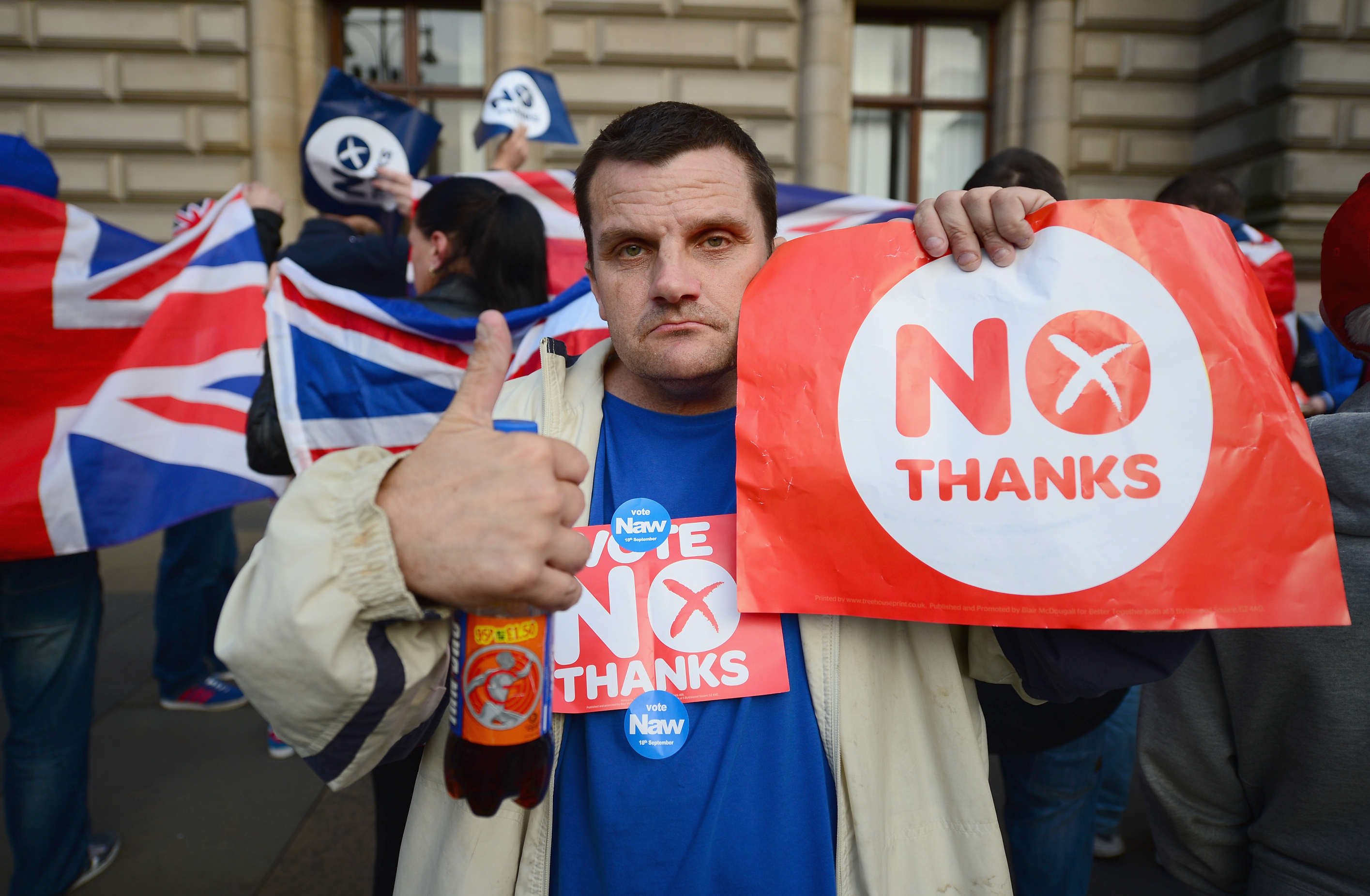 (Photo: A discarded Yes sticker lies on cobble stones along the Royal Mile after the people of Scotland voted no to independence on September 19, 2014 in Edinburgh, Scotland. By Christopher Furlong/Getty Images)